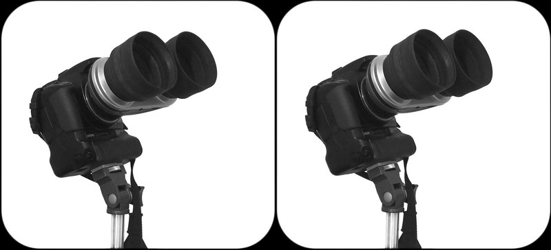 Below: the new model 9005A on Canon EOS 400D with x0.25 wide angle converters, frontal view (cross view)